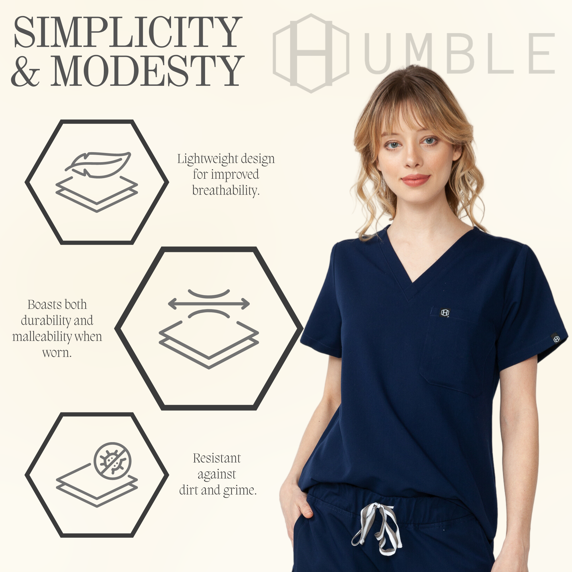 Curated with special attention to detail, we offer the most comfortable fit and feel. With light, airy, and breathable material, our scrub top will fit well with your day-to-day work duties. You'll forget you have it on! Gone are the days of unflattering, uncomfortable scrubs- we humbly bring you our Navy scrub top. This top is designed for healthcare professionals and is available in sizes S-4XL so you can find the perfect fit for you.